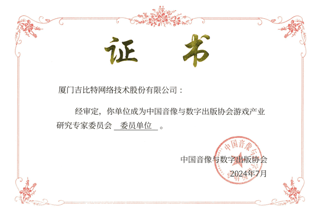 2024年7月25日,,,中国音像与数字出版协会游戏产业研究专家委员会(以下简称“中国音数协游戏专委会”)成立大会在上海市召开,,厦门JIUYOU.COM网络技术股份有限公司及其子公司深圳雷霆信息技术有限公司(以下统称“公司”)正式成为中国音数协游戏专委会委员单位。。