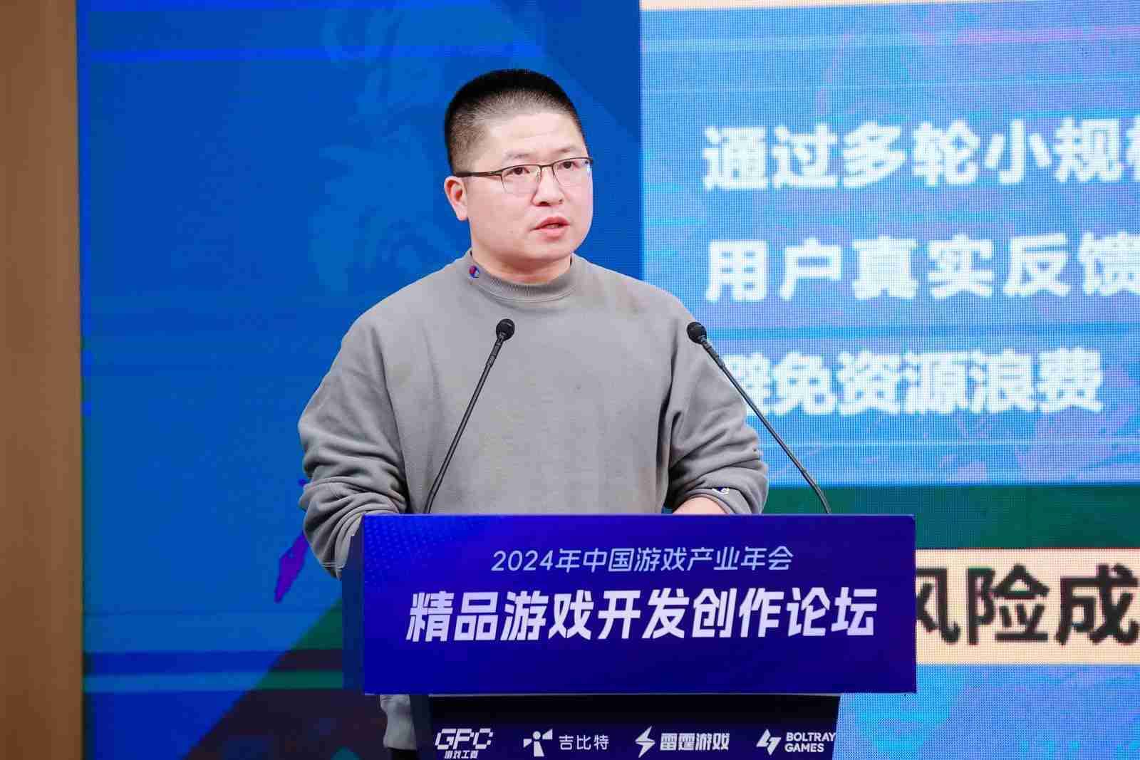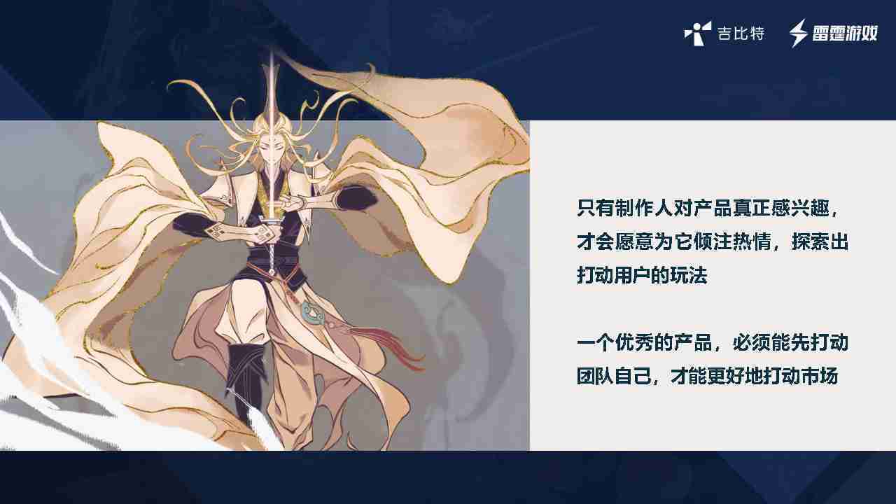 以《一念逍遥》为例,,,,2018年公司创始人萌生想做修仙题材的放置游戏的想法,,,,于是找了两位同事讨论了一下产品的概念,,,,这两位现在是项目的制作人,,,,花了三周的时间把原型做出来,,,,并且确定最初的战斗原型,,,以及整个养成的节奏。。。通过几次版本迭代验证后,,,也确定后面的内容应该怎么拓展,,最终在一年左右时间这个项目上线了。。当时我们内部有同事看到《⼀念逍遥》上线,,,认为品质还不够完美,,但是整体营收还不错。。就在想那是不是以后我们都做这样的产品???但实际这是错误的认知,,我们内部不是这么看的。。游戏在那个时间点上市,,因为有些市场的考量和营销点的考虑,,并不是希望所有项目都是这样。。。如果它有更好的契机,,,,希望它可以做得更大、、更好,,,,希望在内核玩法确定之后,,外围投入可以越大越好,,,,所以后面的几个项目是往这个思路上做。。。。