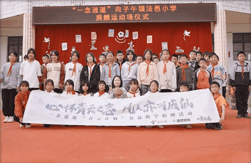 秉持“源于社会,,服务社会”的宗旨,,,公司积极投身于乡村振兴、、、、绿色环保、、、精准帮扶的社会公益活动当中。。公司结合自身业务特征,,,通过《一念逍遥》产品端向玩家发起“守护青云之志”公益助学活动,,2023年上半年,,由公司及助学活动组联合向云南楚雄彝族自治州法邑小学捐建的塑胶操场正式落成,,,,建成后不仅可以满足法邑小学学生们活动需求,,,,附近村校的孩子也可以前来训练,,,,惠及附近约13个村校1,000名学生,,促进了乡村儿童的身心健康发展。。。。