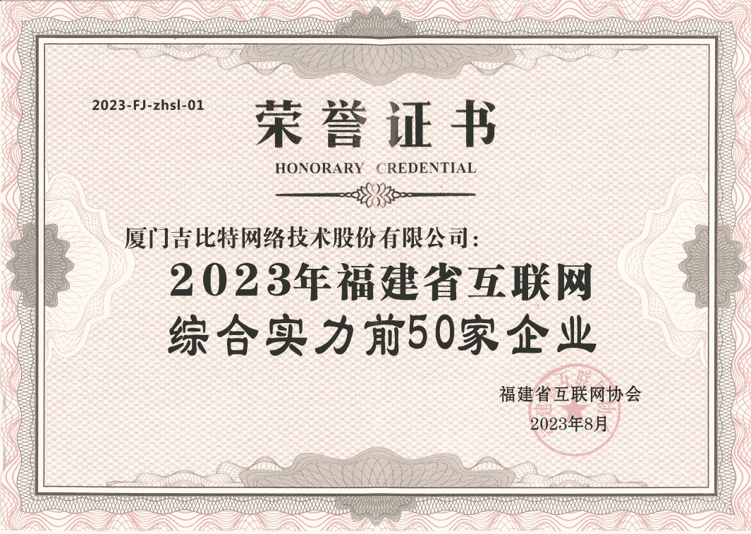公司新闻 位列第1,,,JIUYOU.COM获2023福建省互联网综合实力前50家企业