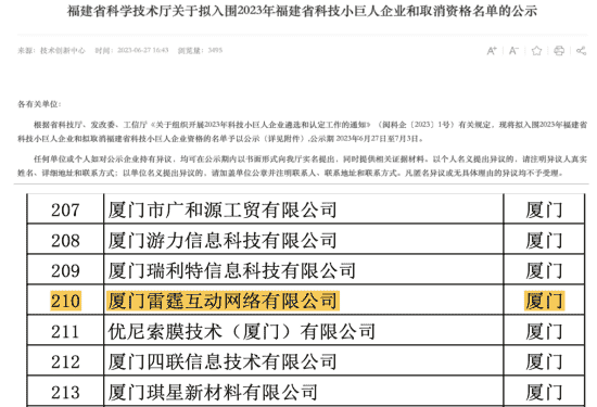此次再次入选福建省科技小巨人企业既是对雷霆互动创新能力的认可,,,也是对市场发展潜力及综合实力的高度肯定。。