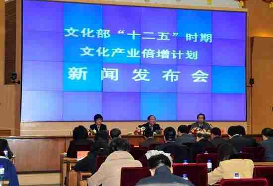 2月28日下午,,文化部在京召开新闻发布会,,正式向社会发布《文化部“十二五”时期文化产业倍增计划》,,,提出了 “十二五”期间文化部门管理的文化产业增加值年平均现价增长速度高于20%,,,2015年比2010年至少翻一番,,实现倍增的奋斗目标。。